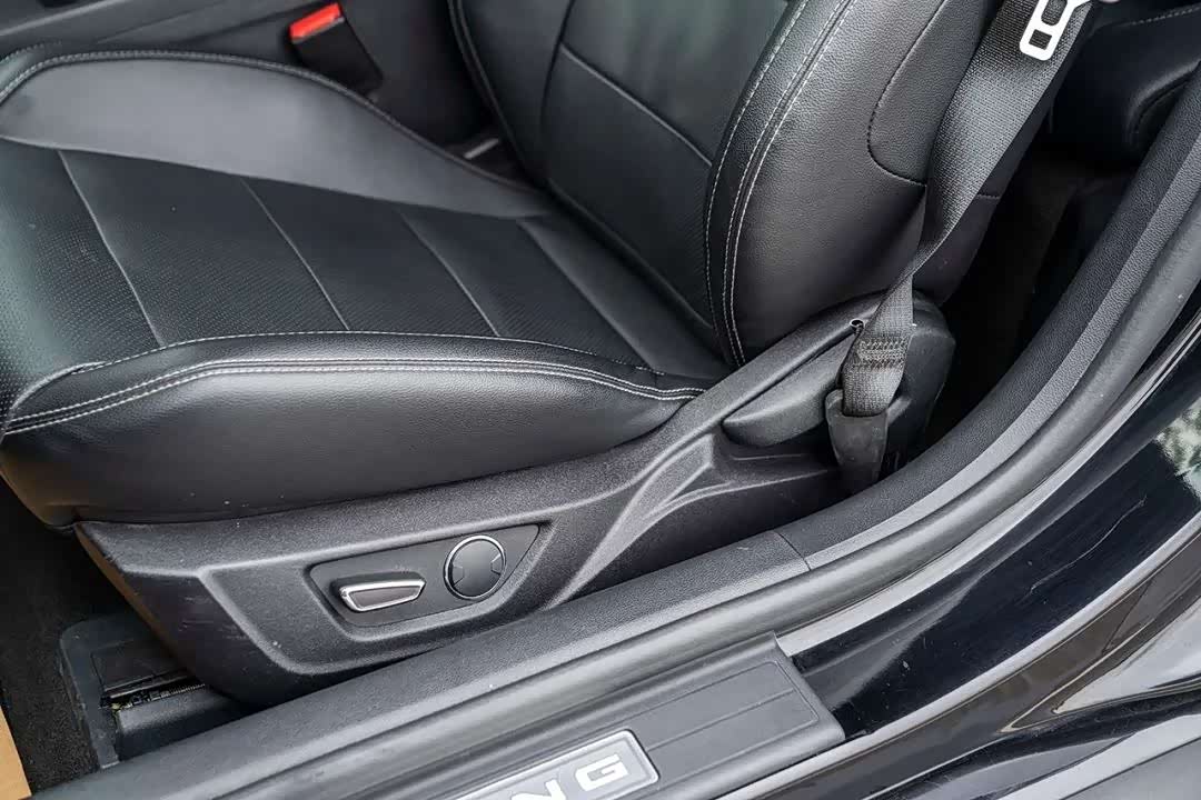 野马的座椅配置很有意思,为了能快速翻折靠背,方便乘客进出后排,它的靠背角度调节是手动的,但是座椅前后调节、腰撑调节都是电动的,这样的混搭配置让我一上来调节座椅的时候有些懵圈。