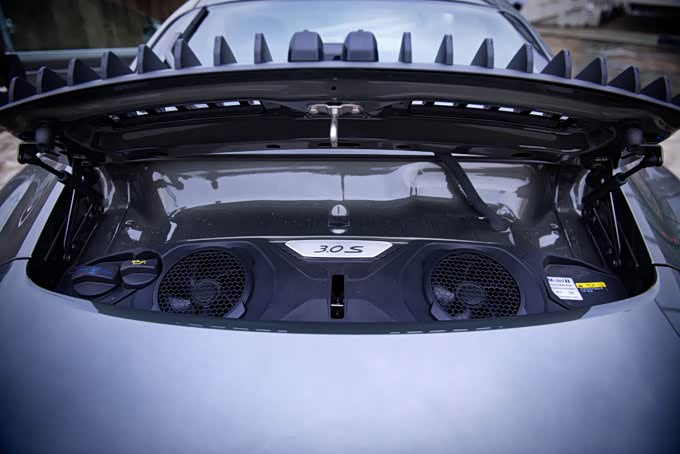 当然,这台911的内饰材质也是相当奢华,选装的alcantara翻毛皮,视觉手感俱佳。另外你和保时捷911说空间就有点欺负人的意思了,这台车虽然是双门四座,但是它的后排只适合放点东西或者坐条狗差不多了。