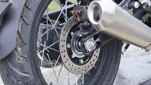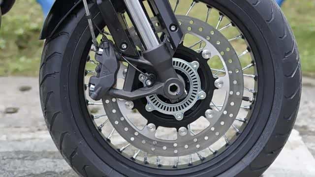 ▲KYB倒置前减震,预载可调。后中央单筒油压减震。减震整体风格偏硬朗,舒适性欠佳。前轮规格120/70-17,后轮规格160/60-17 ,前后均为倍耐力天使轮胎,并装备了可使用真空胎的钢丝辐条轮毂,减少了使有内胎钢丝辐条轮毂行驶中存在的爆胎隐患。