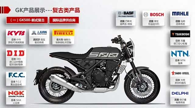 ▲KYB减震、西互制动、贝纳利真空胎、Bosch双通道ABS,如图所示,GK500整车配件使用了许多比较知名的品牌,令整车质量得以保证。
