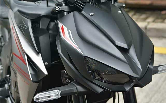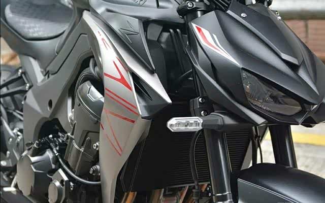 ▲2020 Z1000车头依旧是最吸引人之处,角度俯冲下探,结合高耸前倾的油箱,似跃跃欲试捕食猎物的蟒蛇,造型极具攻击性,左右分体式LED车头灯,开角不大,却格外炯炯有神。