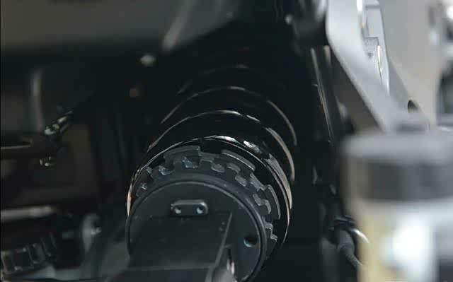 ▲后单筒水平连杆减震,附带全调较功能,减震行程由122mm增加至135mm,提升了制动力。