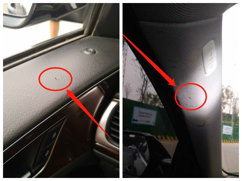 主驾驶门饰板的烟疤还有左A柱饰板上的烫伤告诉我,原车主是个烟民。