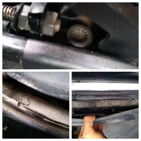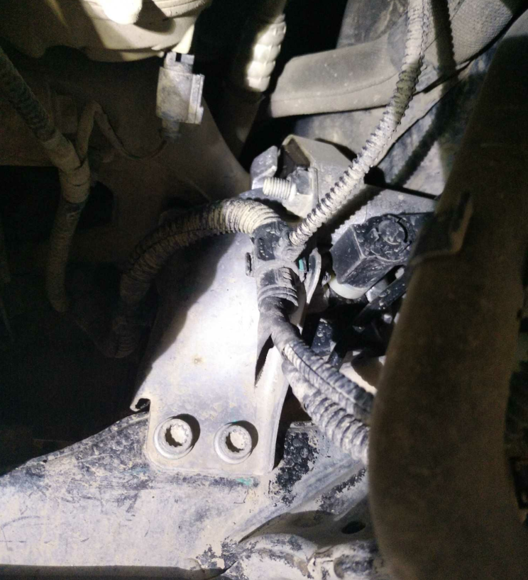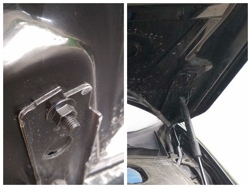 观察左右两侧机盖合页螺丝,左侧有拆卸拧动,因为车头左前有过磕碰后的钣金修复,好理解;右侧合页螺丝未见拆卸。