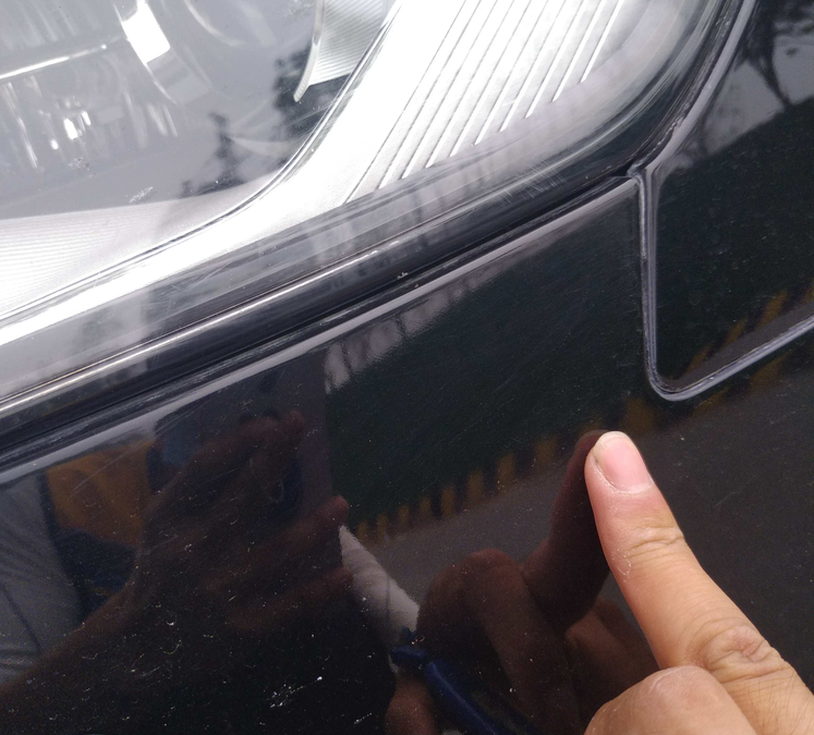 前保险杠没有明显的剐蹭痕迹,不过却有喷漆留下的脏点,一般原厂是不会有的,后保险杠也是一样。前后杠是剐蹭磕碰的高发区域,会经常喷漆修复,就不多解释了。