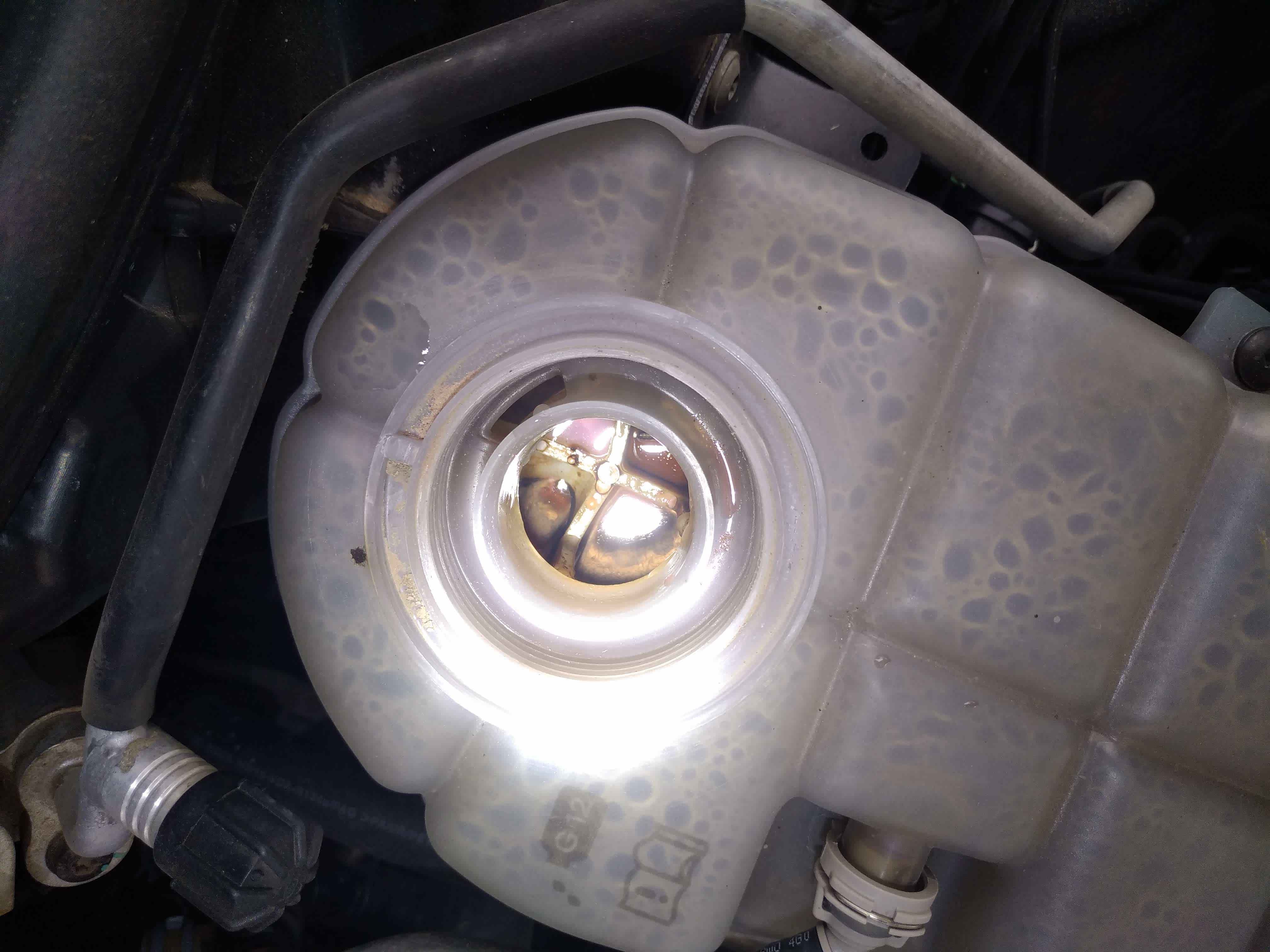 副水壶内部出现乳化油液,一旁的卖家还问猩猩我这是怎么回事?额,你就是这么卖车的吗?这个一般来说都是机油散热器损坏造成的,虽说配件不贵,但是维修起来相当麻烦。