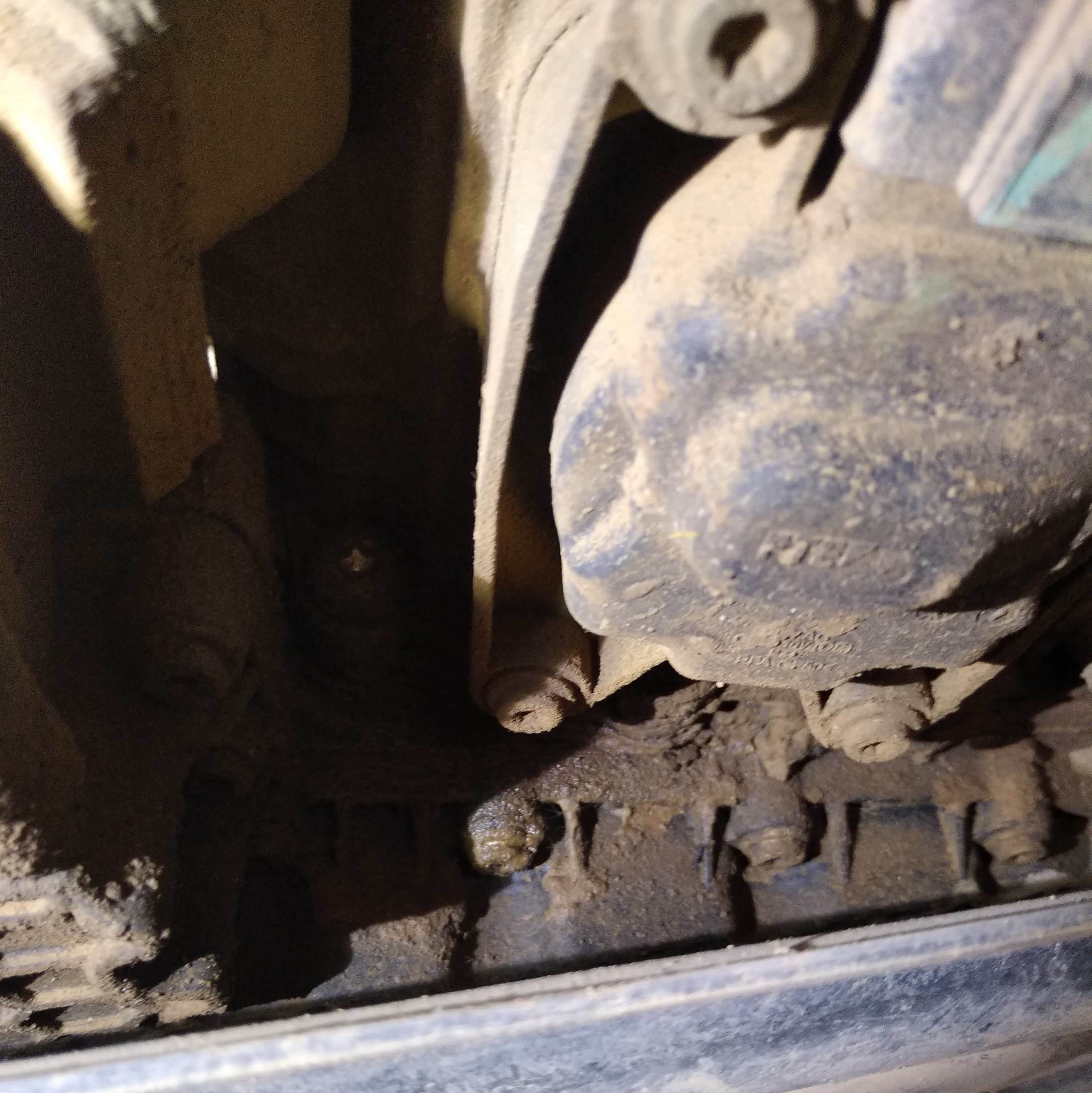 透过破损的护板可以看到变速箱的油底壳存在油泥,看来渗油的时间不短了。这个处理起来还是比较简单的,只需要更换变速箱油的时候把油底壳卸掉,重新打胶就可以了。