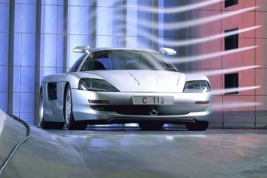 1991年法兰克福车展发表的Mercedes-Benz C112,它可是1990年Group C赛车Mercedes-Benz C11的直系后裔。比起同一年出现的Audi Avus Quattro,这辆奔驰装配有灵活的套件,看起来很时髦、更加贴近当时的设计美学。事实上,与当时一系列Volkswagen W12概念车相比,C112并非真正意义上的概念车,而是一款大众W12风格的未来技术测试平台。