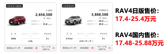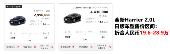 综合所有车型来看的话,全新Harrier在日本含税后的价格区间是人民币19.6-33万元。那么日本的售价对于中国市场来说是否有意义呢?非常有意义。因为同样是SUV车型且采用相同动力总成的全新RAV4,其在日本的售价与中国几乎完全一致!