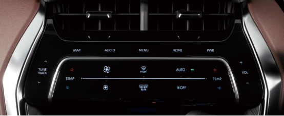 丰田品牌的车系其实很少采用触摸按键这样的设计,不仅是丰田,日系品牌好像大多如此。但是在全新Harrier上它的空调操作区域就采用了全触摸的方式进行操作,这让我非常意外。而且不仅是空调方面,多媒体系统的一些功能也在这个触摸区域内进行操作,但音量调节也用触摸调节这就有点说不过去了。