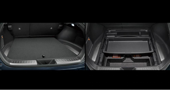 内部空间根据官方提供的资料来看,车内的小型储物格/槽是非常丰富的,水瓶、手机、零散物品都有很好的放置位置,并且手机还有专门的无线充电面板。后备厢具有4/6放倒功能,根据不同的需求可放置一些超长物品。在后备厢地板下方,还设有储物暗格,以及可以活动的托盘,空间优化做得非常出色。