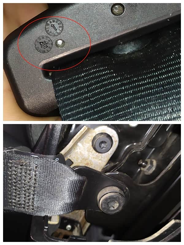 主驾驶安全带固定螺丝无拆卸拧动痕迹,生产日期与车辆相符。