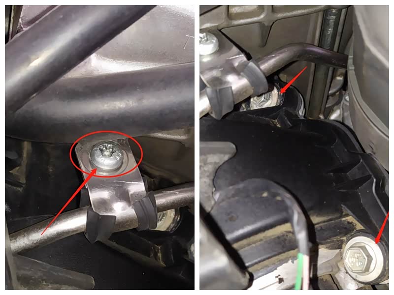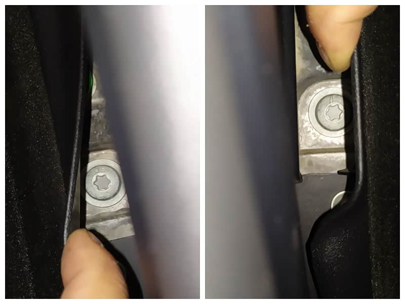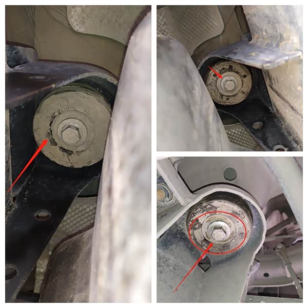 接着发现车身固定螺丝全部都有拆卸痕迹,意味着车身与底大梁分离,这是重大事故更换车身/底大梁,或者吊装分解维修发动机才应有的待遇!不过通过之前的检测基本排除有更换车身的情况,现在可以肯定发动机有过吊装。看来这个卖家还是不够诚信啊。