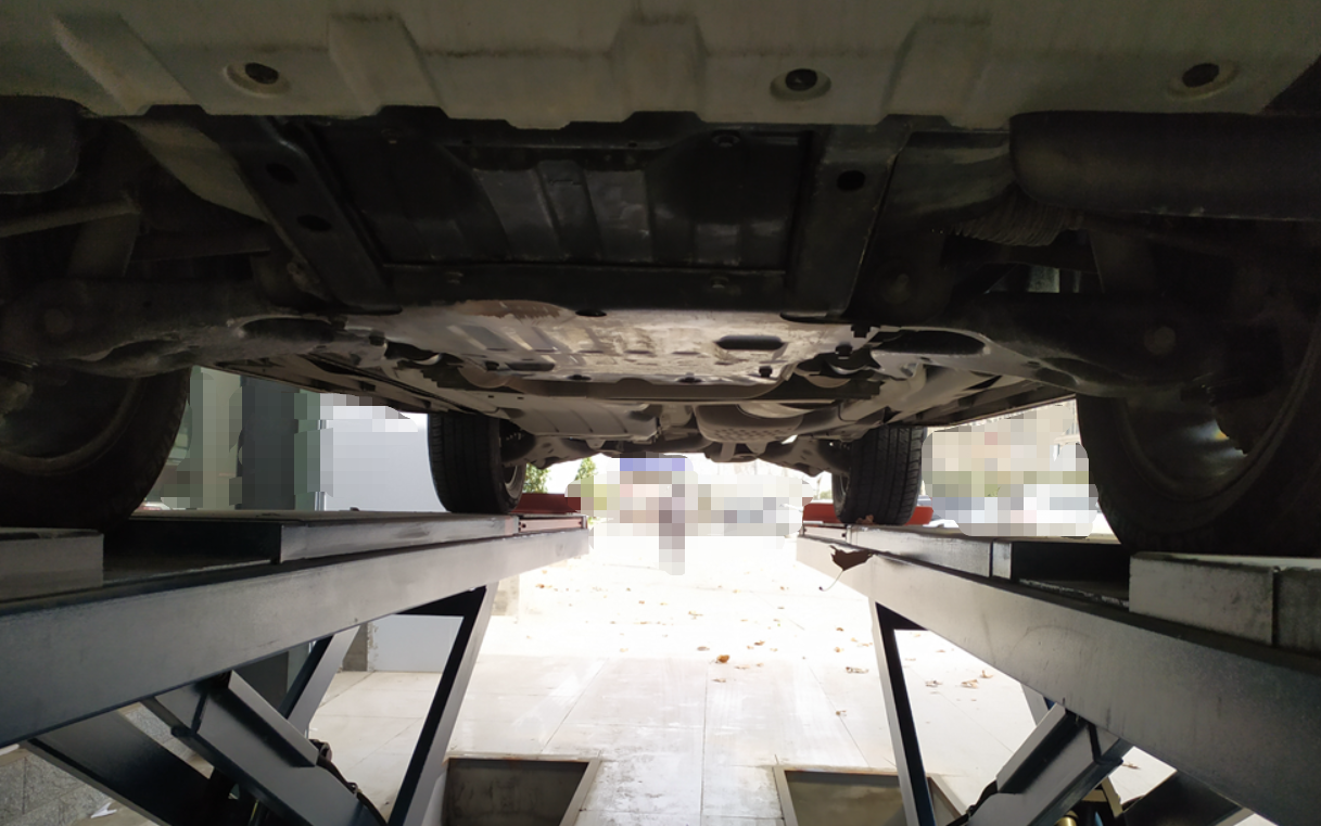 由于怀疑发动机吊装分解维修,并非卖家所说的维修多处漏油,所以我和客户商量了之后,直接让卖家把车开过来上架检测底盘。