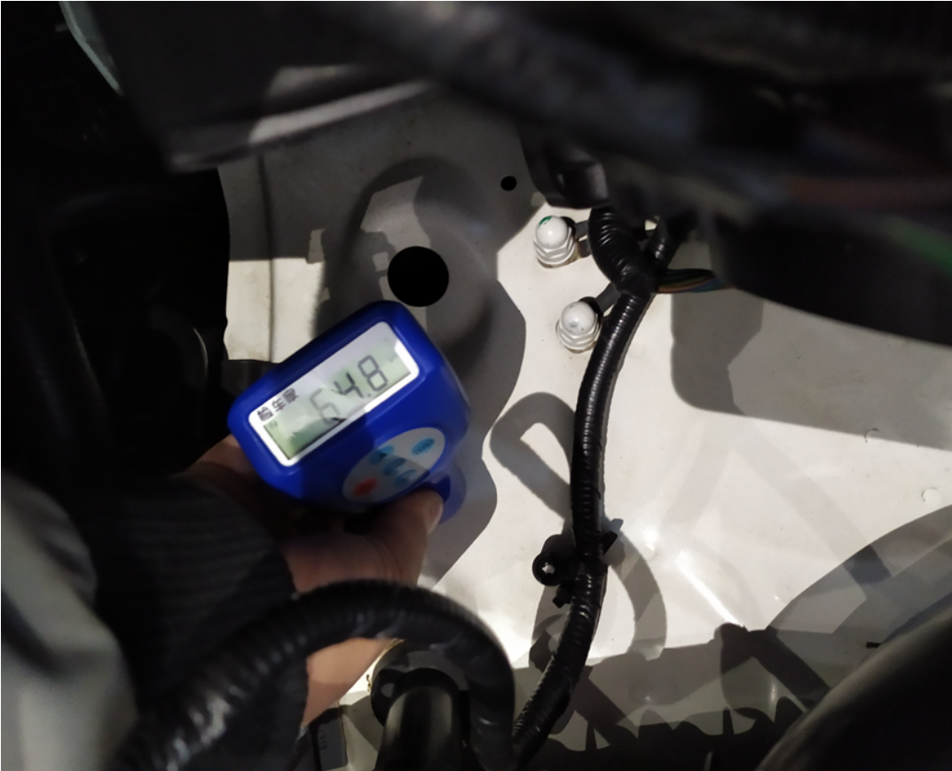 发现机盖喷漆,漆面数值异常说明前保险杠就不是简单的剐蹭喷漆了,但也不能就此下定结论,还得进一步确定。然后发现左前翼子板喷漆,左侧上边梁钣金喷漆,看来问题还不小,我赶紧仔细检测左前A柱,发现上边梁内侧并未发现碰撞导致的切割钣金修复痕迹,还好不算严重,可能是剐蹭导致的。