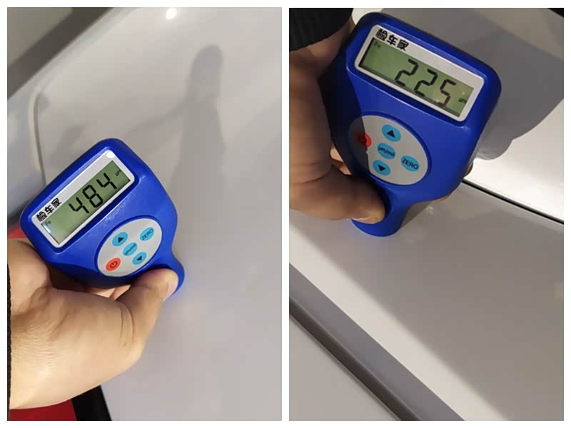 下面继续检测,发现左后翼子板漆面数值达到钣金范畴,但是面积不大,只有下半部分并且靠近后保险杠,而且左后导水槽车身机构件未见异常,可能是侧面剐蹭导致的,另外右前翼子板有喷漆。漆面检测完了,总的来说车身覆盖件多处钣金喷漆,并无较大问题,就是左侧上边梁轻微钣金喷漆修复,但也并不影响后期使用,不过会影响二手车残余价值,后期入手的话可以作为砍价项。