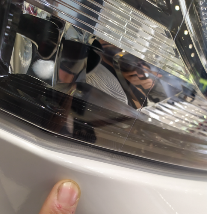 首先发现前保险杠喷漆,喷漆工艺很不错,不仔细看完全看不出飞漆现象。不过前后杠喷漆在二手车范畴里面很常见,开车嘛难免不了刮刮蹭蹭。不过不能掉以轻心,也有可能是前杠进行更换后喷漆,如果是更换前杠,那问题就大了,下面拿出专业设备进行检测。