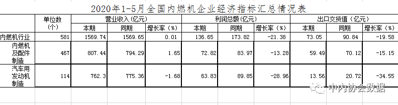 5月,随着企业生产经营的逐步恢复,内燃机行业效益状况得到改善,各项经济数据延续了上个月的回升走势。1-5月,三大指标与前4个月降幅继续收窄,主营业务收入同比增速已基本持平,但利润总额、出口交货值同比下降近20%,降幅依然较大。
