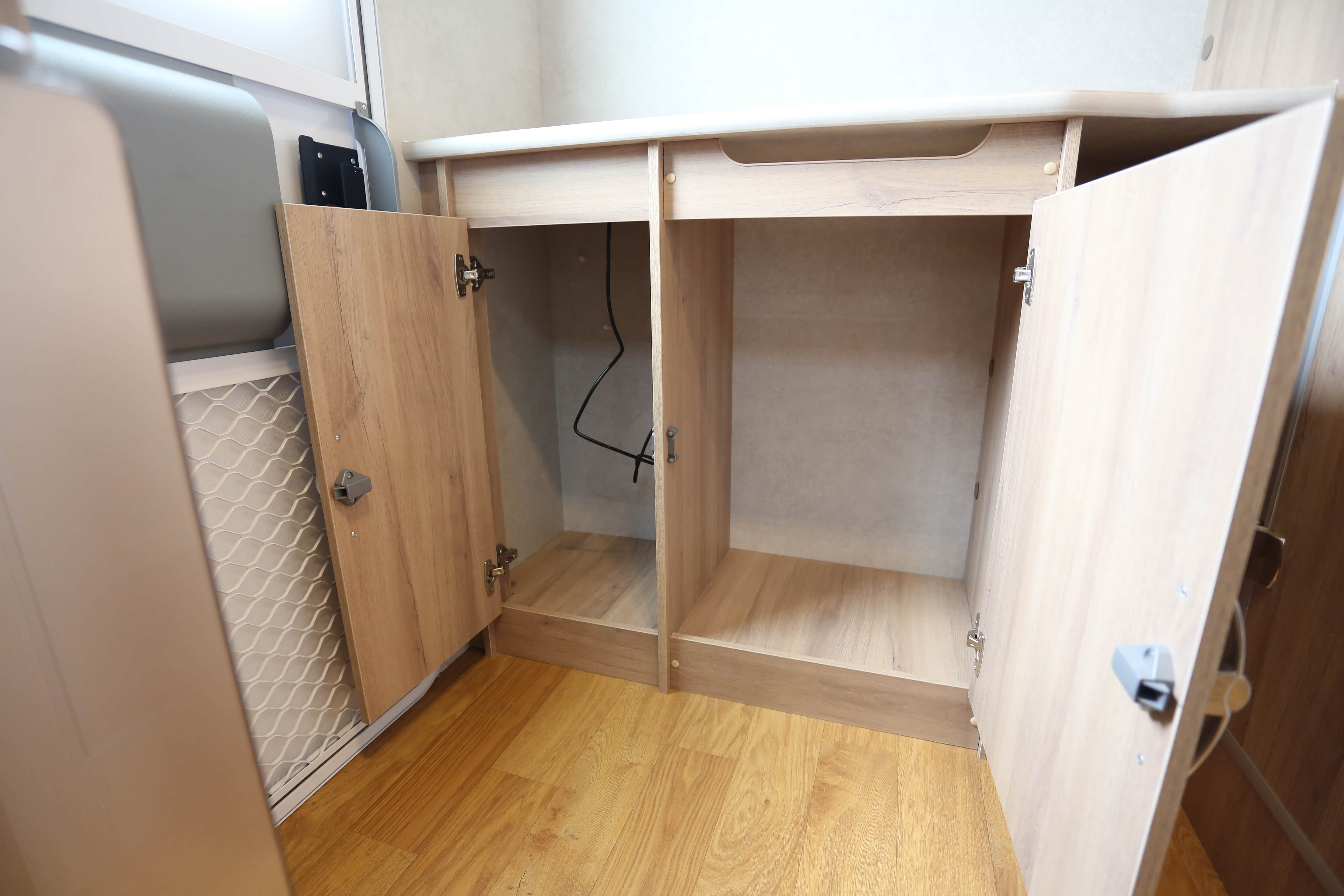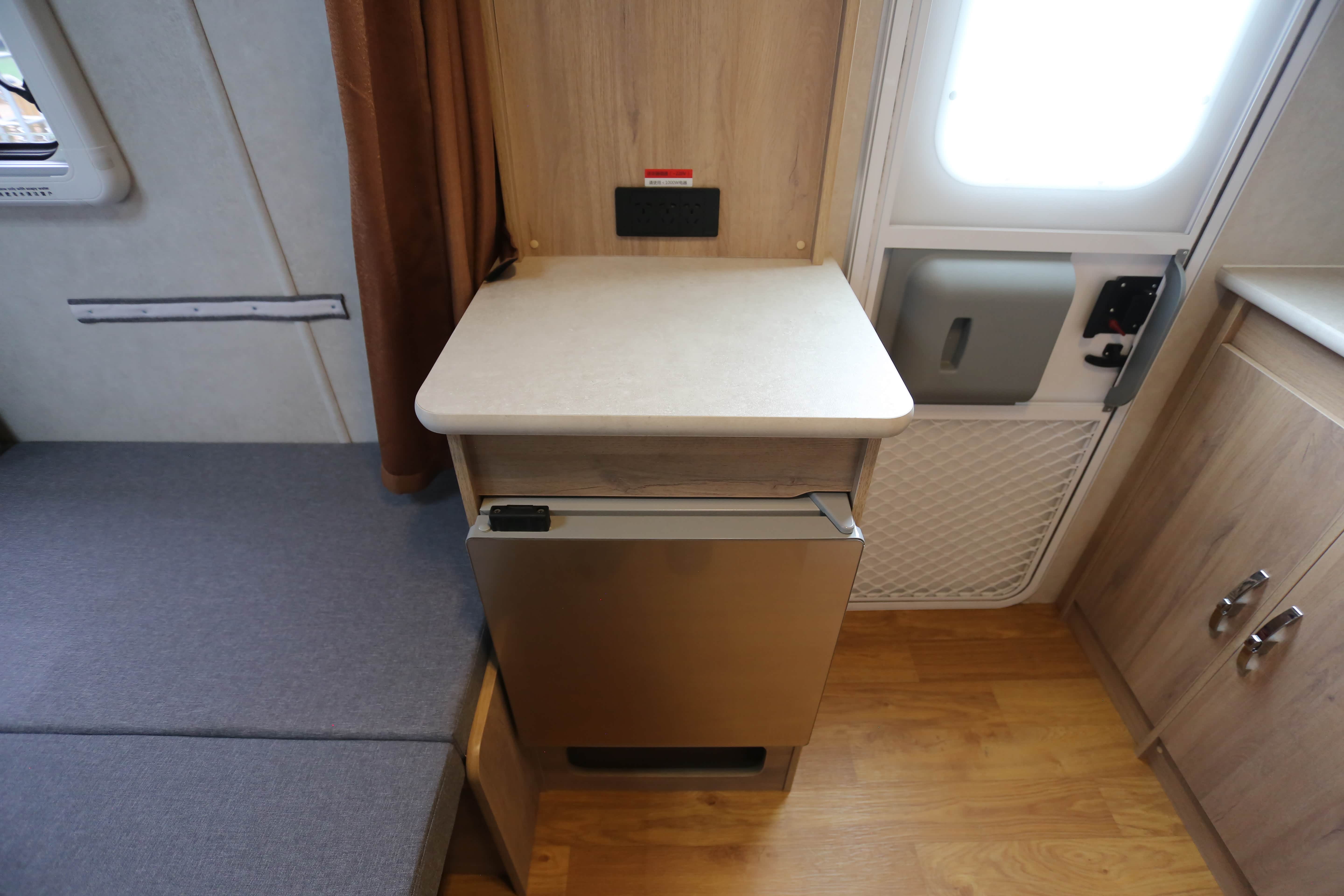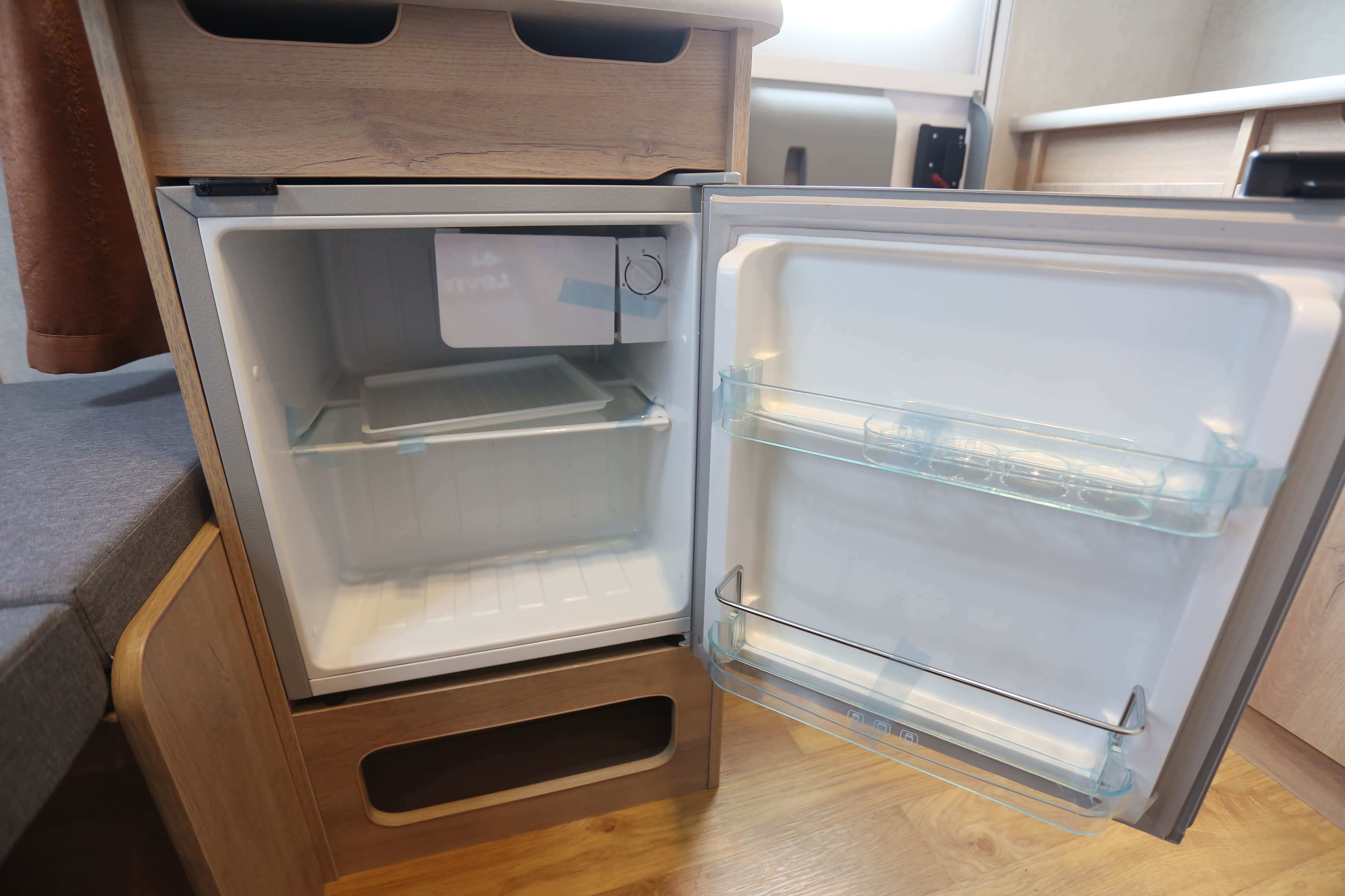 柜子下方配有一个12V的车载冰箱,容量50升 ,虽然冰箱的容量不是很大,但既有冷冻区,也有冷藏区。