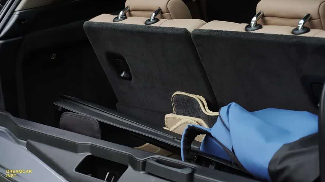 想要支起座椅,要先把后备箱置物隔板取下,右侧有一个按钮,按下滑出来就行。