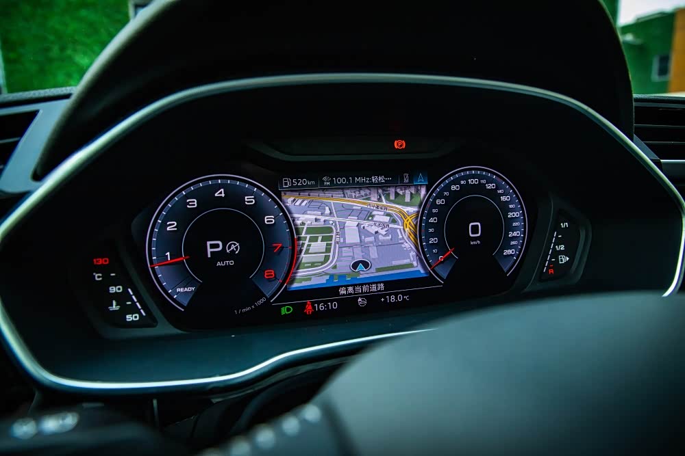 我们此次测试的车型是全新的2.0T高功率版本,其尾标为45TFSI。其可输出162千瓦的最大功率和350牛·米的峰值扭矩。与之匹配的是代号为DQ500的7速湿式双离合变速箱,并且这辆顶配车型还搭载了quattro全时四驱系统。仅2.0T高功率加上全时四驱系统两项加起来,就能大致猜想到这辆全新Q3的油耗并不会太低。