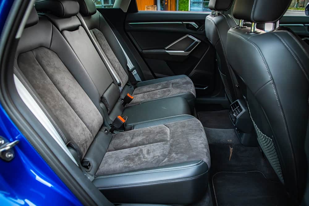 为了应对来自国产X1的竞争,全新一代Q3的尺寸自然也做了相应调整。其长宽高分别为4518毫米、1843毫米、1573毫米,轴距为2680毫米。在前排调整到正常乘坐距离后,我们1.81米的男士乘坐于后排,实测的头部和腿部空间分别为3指和四指,比起老款Q3而言已经有了长足的进步。新一代Q3的座椅材质选择了真皮与翻毛皮相结合的方式。乘坐时软硬度适中,前排的侧向支撑给得很足,整体乘坐舒适度较为不错。