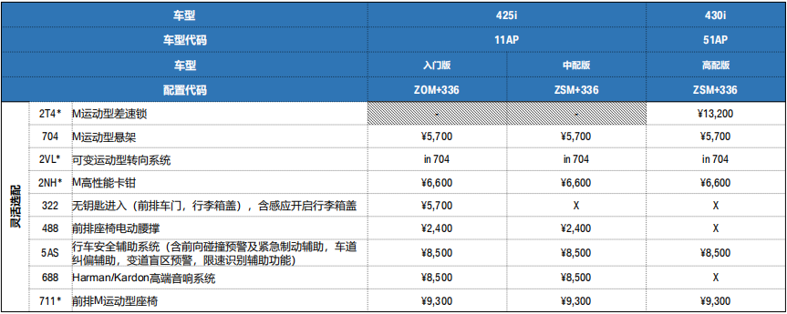 首先要强调的是,这份配置单中只有425i和430i,按宝马的习惯来讲这两款车型肯定都是搭载的2.0T四缸发动机,而M440i车型并未出现,是不是说六缸车型无缘中国市场了?