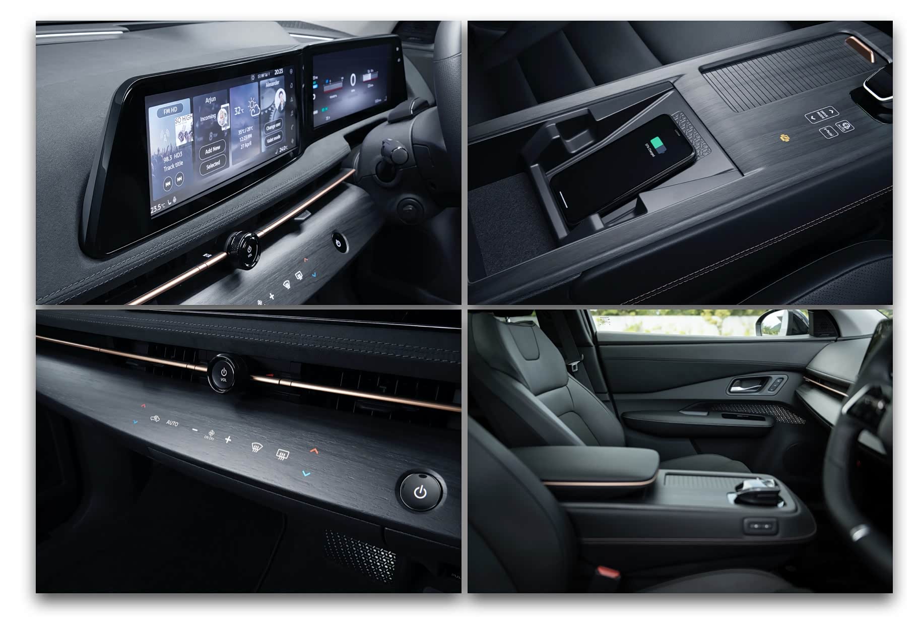 作为一款新时代的产品,智能网联是必须的。日产Ariya配备了由两块12.3英寸屏幕组成的全新人机交互系统——“巨石(the Monolith)”,同时搭载了日产汽车最新的驾驶辅助技术——ProPILOT智控领航技术。日产称这个ProPILOT可让它在高速公路上进入无人工干预驾驶状态。另外,该车还配备了远程智控泊车系统、全景式智能监控影像、 超视距碰撞预警系统、预碰撞智能刹车、后轮自动紧急制动等日产安全屏障(Nissan Safety Shield)技术。
