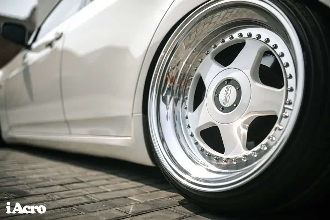 格子最初接触到改装是在的EZ Life论坛,那时美式风味浓郁的DUB风格引起了他的注意,bling bling的巨大电镀轮圈、控制自如的液压避震显得极具冲击力。随着对改装越发兴致高涨,他发现空气避震普遍性更高,也更适合日常生活里那些常见车型。接下来Hellaflush在国内卷起一股热潮,他也顺理成章的迷上了更亲民的姿态风格。