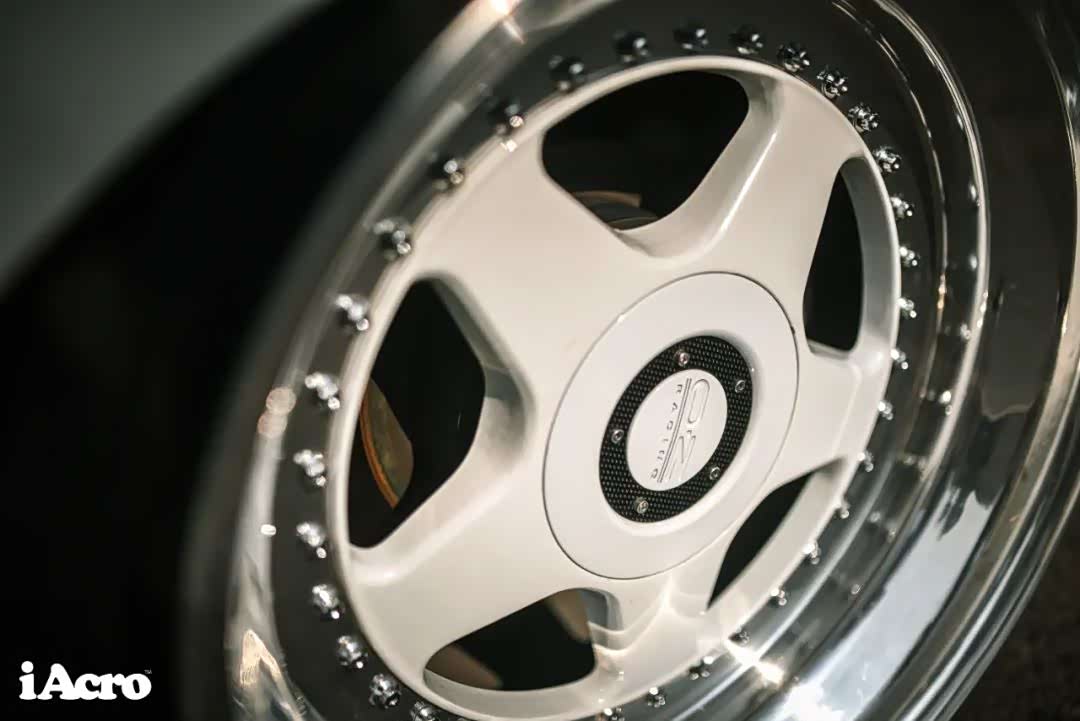 无数玩家眼中的瑰宝OZ Futura,中意经典轮圈的他幸运地以合适的价格找到了这套当时全部原装的Futura,测算数据后拆散重新搭配圈边、筒身,尺寸由17寸来到了19寸,前3寸/后3.5寸圈边的视觉效果足够协调。