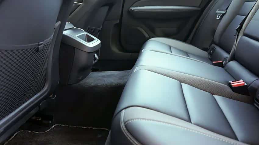 坐进后排,座椅的填充物软硬适中,包裹性以及支撑都做的很到位,高配车型还支持坐垫长度和腰部支撑等功能调节。同时后排还配有中央扶手,整体乘坐舒适度还是很不错的。再说乘坐空间,以180cm身高为例,头部空间不到一拳,略微显得有些局促,中央地板有较高隆起,中间乘客的乘坐体验可能不会太好,不过腿部空间还算宽裕,大约有两拳左右的距离,如果后排只坐两人还是很舒适的。