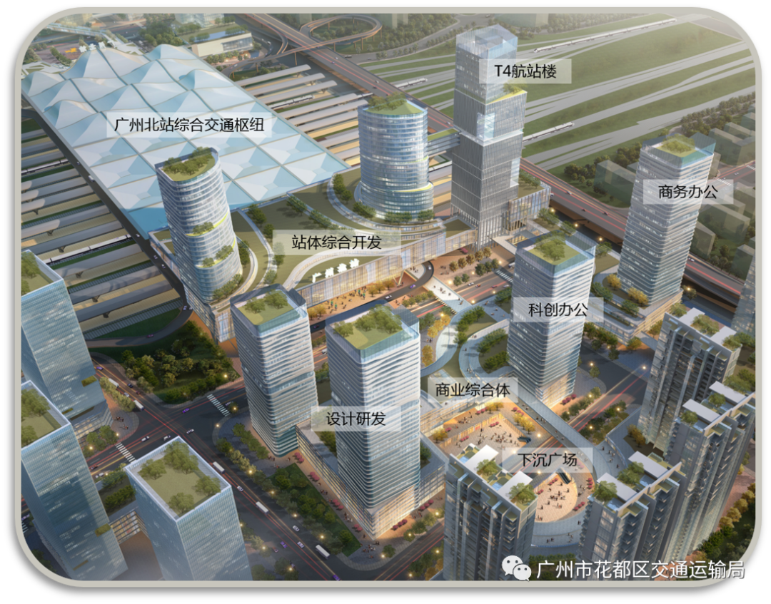 花都区积极落实广州综合交通枢纽总体规划,对北站周边区域进行连片改造,规划了10平方公里的广州北站新城,计划打造集商务会展、总部经济、旅游购物于一体的城市综合体。广州北站10平方公里控规已于2020年1月31日通过市政府审批并实施。