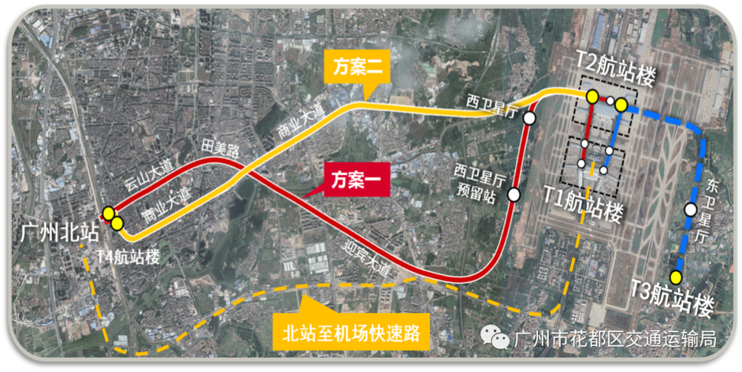 花都区交通运输局积极谋划广州北站与白云机场空侧专用轨道规划建设。在广州北站东广场设置T4航站楼,并规划建设广州北站至白云机场空侧专用快速轨道线,实现北站至机场6-8分钟快速换乘。目前该项目取得重要进展,市发展改革委已委托广州地铁集团开展前期工作,计划纳入白云机场三期扩建工程实施。