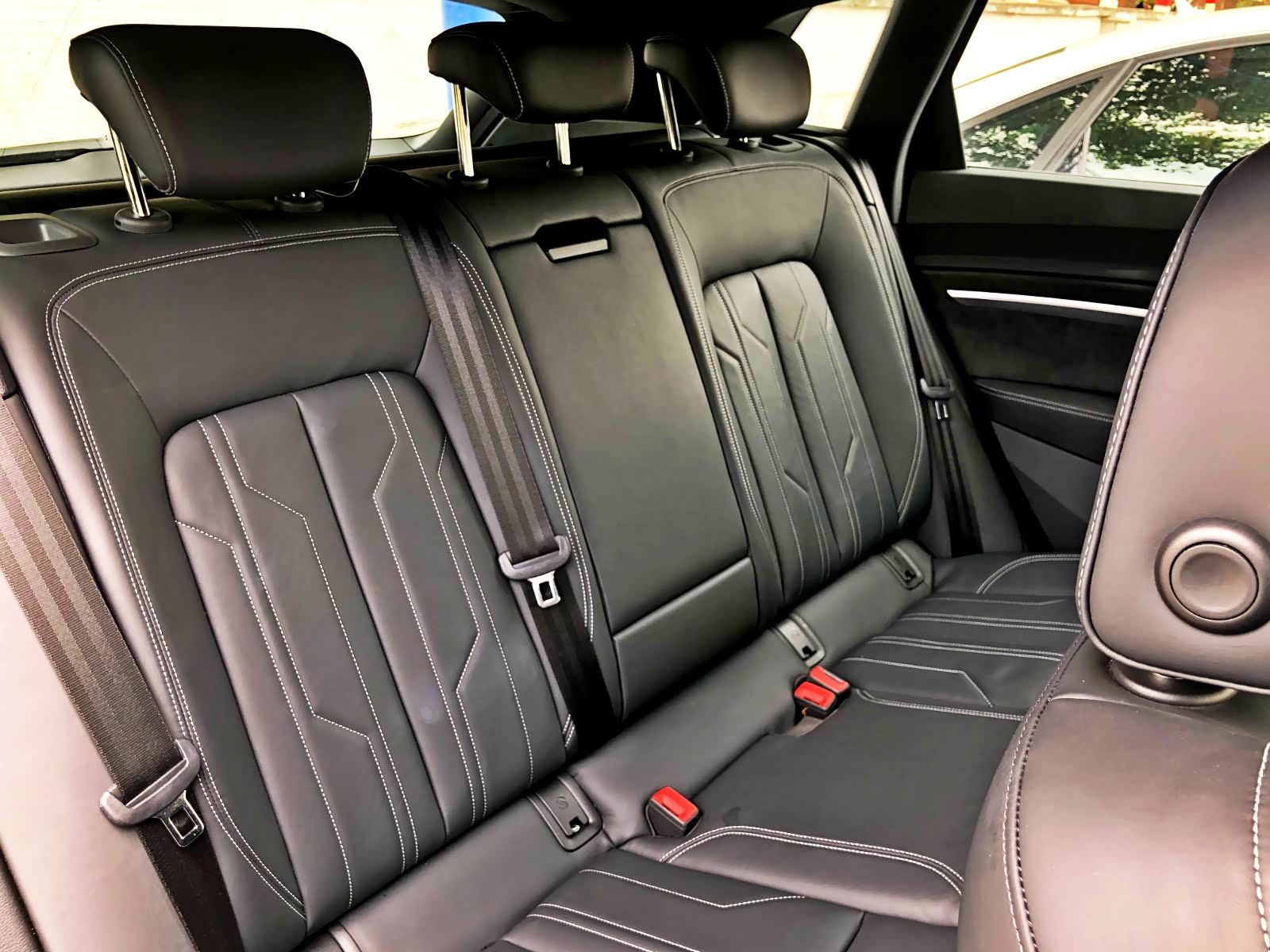无钥匙进入和启动为全系标配功能,进入到车内,奥迪经典的三联屏设计也在e-tron上得到传承,中控的整体风格朝向驾驶员一侧,环抱感非常强。除最低配车型其余为真皮座椅,乘坐感十分舒适。全系车型均为12.3英寸全液晶彩色仪表盘,全球限量版Edition 1与其它车型不同的是增加了HUD抬头显示和前排手机无线充电功能。