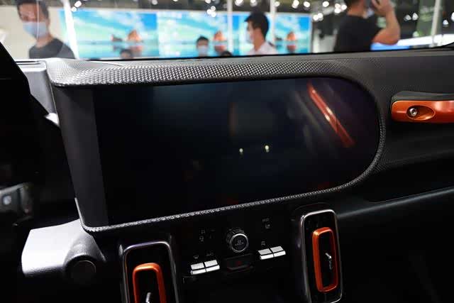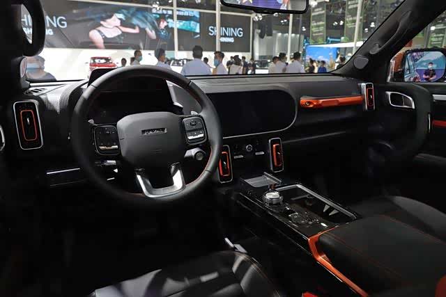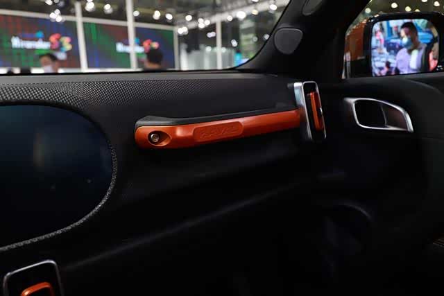 内饰的设计主打年轻时尚,甚至有点像儿童玩具车的质感。中控、门板全部为硬塑料,点缀橙色的装饰板,并且副驾驶还为越野准备了扶手。同时前排两个车门A柱上都有拉手,方便上下车。
