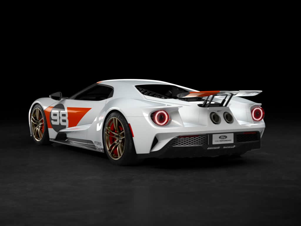 外观方面,福特GT Heritage Edition车型采用了当年GT40的涂装,车身喷有98号的圆形图案,并且左右两侧的车门采用的是非对称式的喷涂,整车的底色也将采用与冠军车一样的白色车声。福特官方还表示,这是勒芒赛车版涂装首次被应用在全新福特GT上,除了向经典致敬,也有纪念意义。