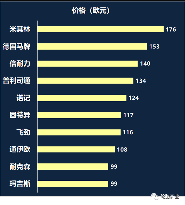 价格方面的差距还是非常大的,最便宜的玛吉斯Victra Sport 5和耐克森N'Fera Sport SU2和最贵的米其林Pilot Sport 4差了77欧元之多,从价格这方面来讲,玛吉斯无疑是性价比最高的。