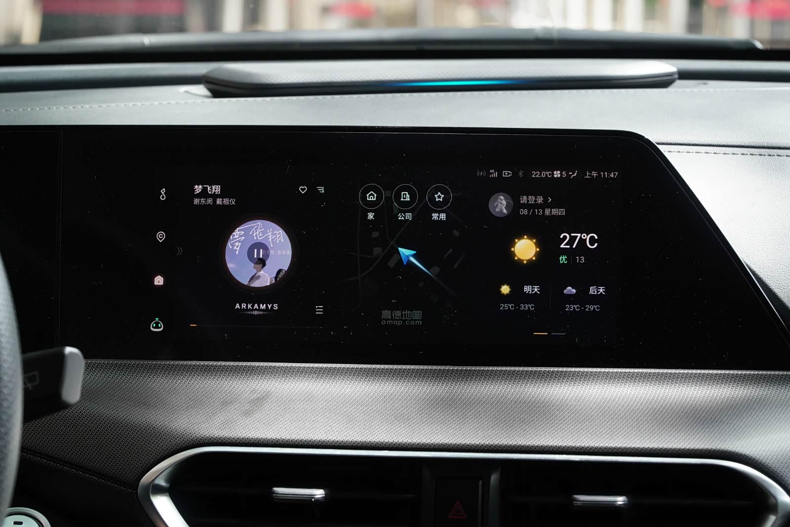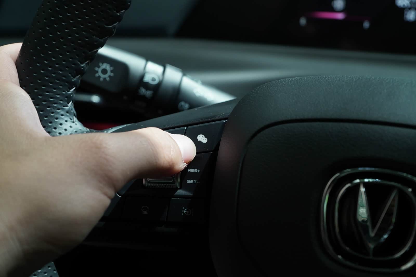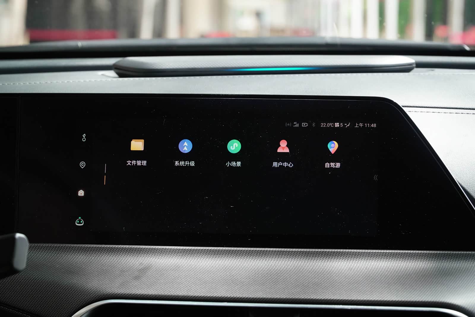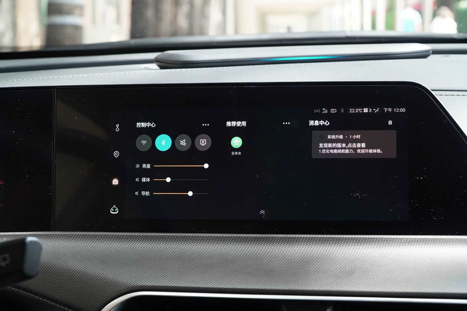 中控台上这个长得很像音响的东西,官方称之为智能载体,它能够与语音交互、碰撞预警、ACC自适应巡航、疲劳驾驶等功能进行联动,通过灯光颜色和闪烁进行变换来提示驾驶员。