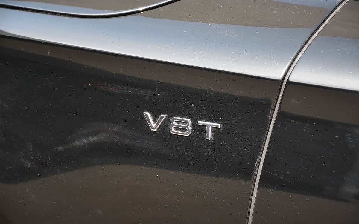 尽管,当年A8车型上的镀铬侧裙饰条并未出现在这辆S8上,但这依旧不影响整车的视觉效果。而采用银色涂装的外后视镜,也一直是奥迪旗下性能车型最具标志性的一点,加之两侧的车门前端均标识了"V8T",更加彰显了S8的独特身份。