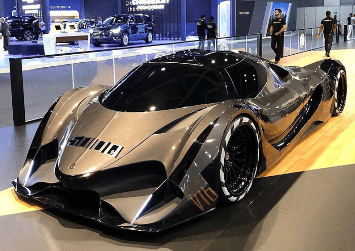 这是来自迪拜的超级跑车品牌,Devel Sixteen搭载的是一台12.3L的六缸发动机,排量比布加迪还有多4.3L,据说顶配车型的最大马力能够达到3000马力,也有报道称是5000马力,而官方给出的数据是百公里加速1.8秒,最高时速为560公里每小时,这已经是能够叫板飞机的时速了,可惜的是,这款车更像是一个“毯星”,虽然数据炸裂造型凶猛,但是除了在各大车展出现之外,我个人是没有看到过这款车的加速测评,所以是口嗨的第一还是实打实的第一还不好说,不过官方给出了560公里的时速,那么还是放在第一名吧!