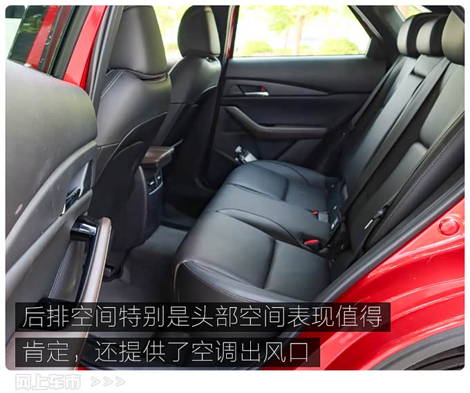 对汽车空间的需求,都是跟随使用场景而产生的。二胎家庭肯定就要至少六个座位的车型,而参加工作不久或是刚组建家庭的年轻用户,车辆大部分时间都是1-2个人使用,真的需要买一辆“大”车吗?长安马自达CX-30的空间表现,我觉得刚刚好,前排就不多说了,后排空间也并没有想象中那么局促,而且车门内侧内凹的设计,让车内横向空间表现更好。