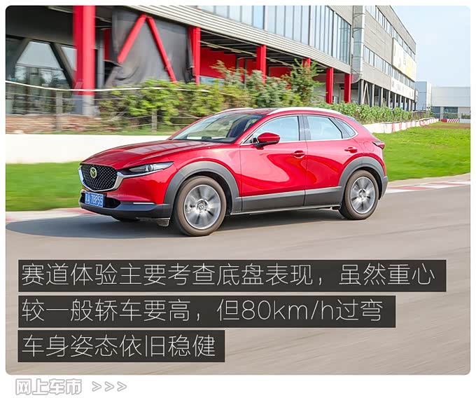 这也是长安马自达CX-30“恰到好处”的一个表现:这款车可以作为小情侣舒舒服服的城市代步车,同时在赛道上也能精准地劈弯走线,顺利完成最高车速75km/h紧急变线的科目。