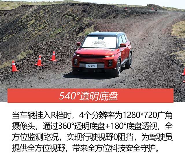 作为此次展示的重点,吉利ICON的540°透明底盘还是最为实用。4个分辨率为1280*720广角摄像头通过360°透明底盘+180°底盘透视全方位监测路面,哪怕是盲驾,也可以轻松应对。在实际应用场景中,通过颠簸、坑洼等极限路面时,都能给驾驶员带来极强的信心。