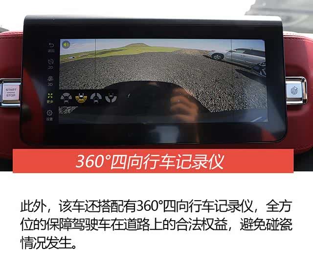 另外,该车还搭配了360°四向行车记录仪功能,该系统可实现前后左右四个方向的全方位监控,同时对车速、转向、灯光、主驾安全带等11项驾驶信息进行实时记录,实实在在的保障了驾车者的合法道路权益,避免碰瓷的事情发生。