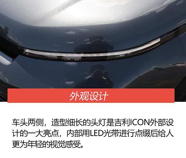 造型设计上来说,吉利ICON拥有360°无死角的完美。在车头上,吉利ICON是为数不多的燃油车采用封闭式进气格栅的设计,整体给人极为简洁、明了的视觉冲击效果。在车头两侧,还有造型细长的头灯,内部用LED光源进行加持后,夜间看起来有着极为亮眼的视觉效果和辨识度。