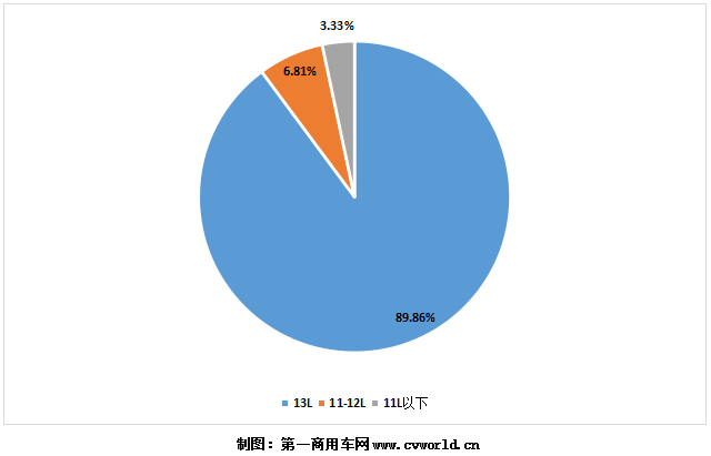 今年1-7月国六柴油重卡发动机销量分排量占比图