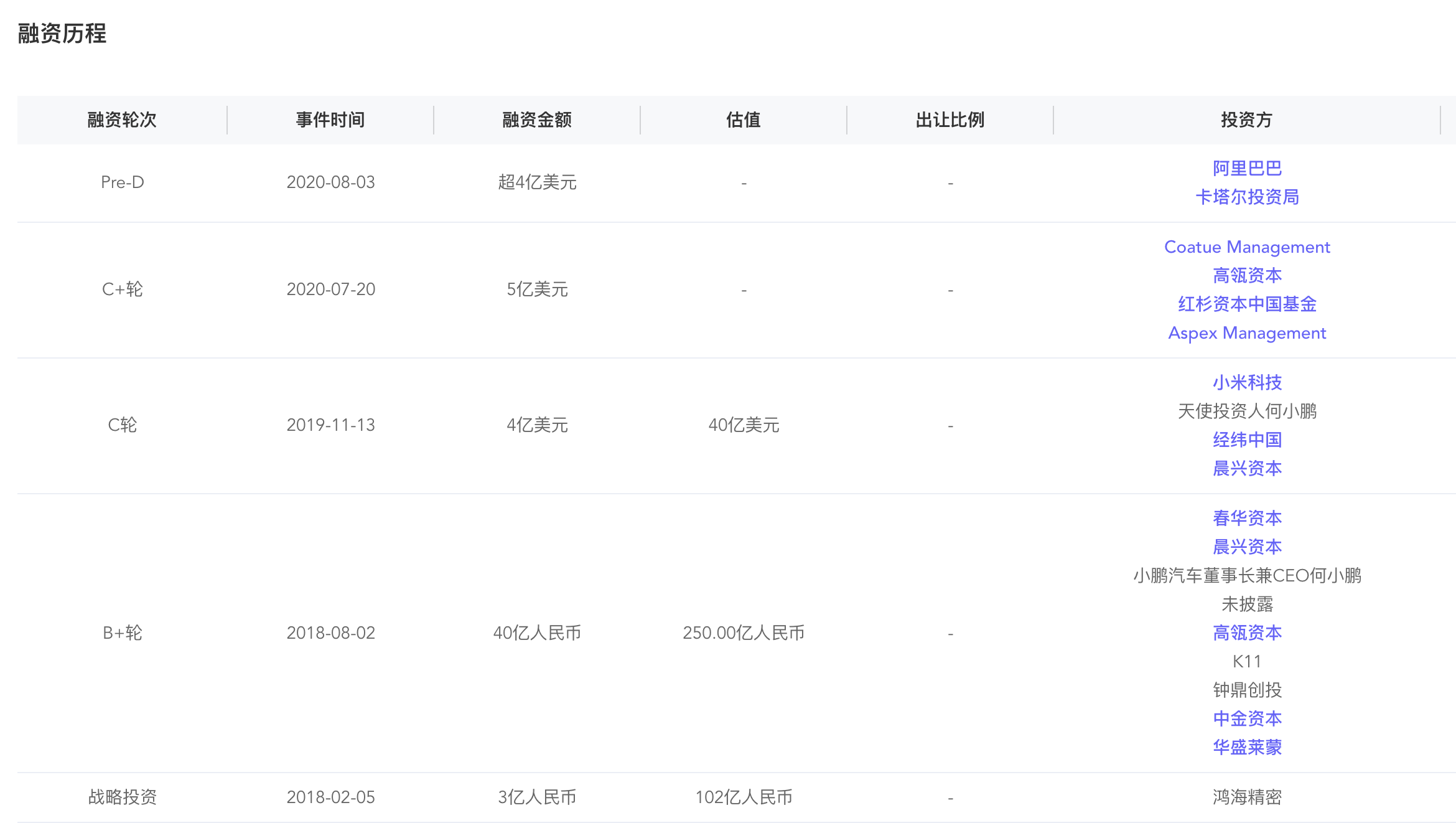 小鹏汽车IPO前的近5轮融资(来源:睿兽分析)