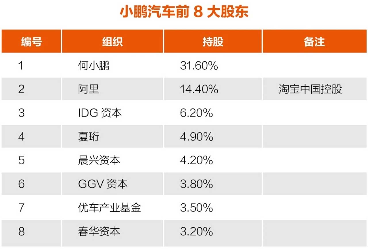 在小鹏汽车的股东名单中,不仅有阿里巴巴、小米这样的互联网巨头坐镇,还有IDG资本、晨兴资本、GGV纪源资本、红杉中国、光速中国等数十家明星投资机构加持。其中IDG资本作为最大财务投资方,持股达到6.2%,仅次于阿里。