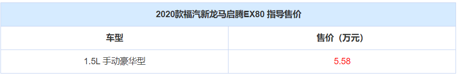 2020款福汽新龙马启腾EX80新车仅推出1款车型,指导价格为5.58万元,定位是一款宜家宜商的7座MPV。
