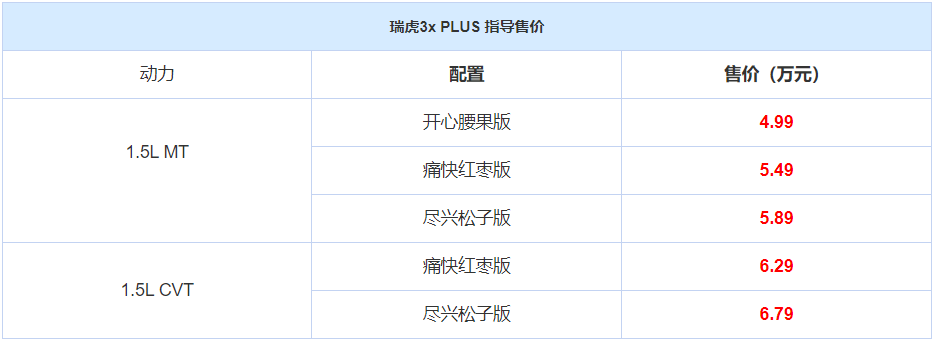 新车提供1.5L发动机,搭配手动变速箱和CVT自动变速箱两种动力总成共5款车型,官方售价区间为4.99-6.79万元,还推出4重快乐礼包,包括购车即享3000元商业保险、3000元金融购车补贴、2000元置换补贴以及发动机10年或100万公里超长延保政策。
